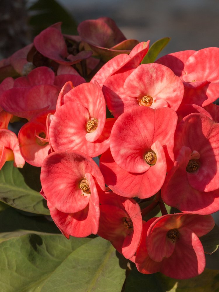 | Euphorbia milii | Full sun indoors | Nearly year-round |