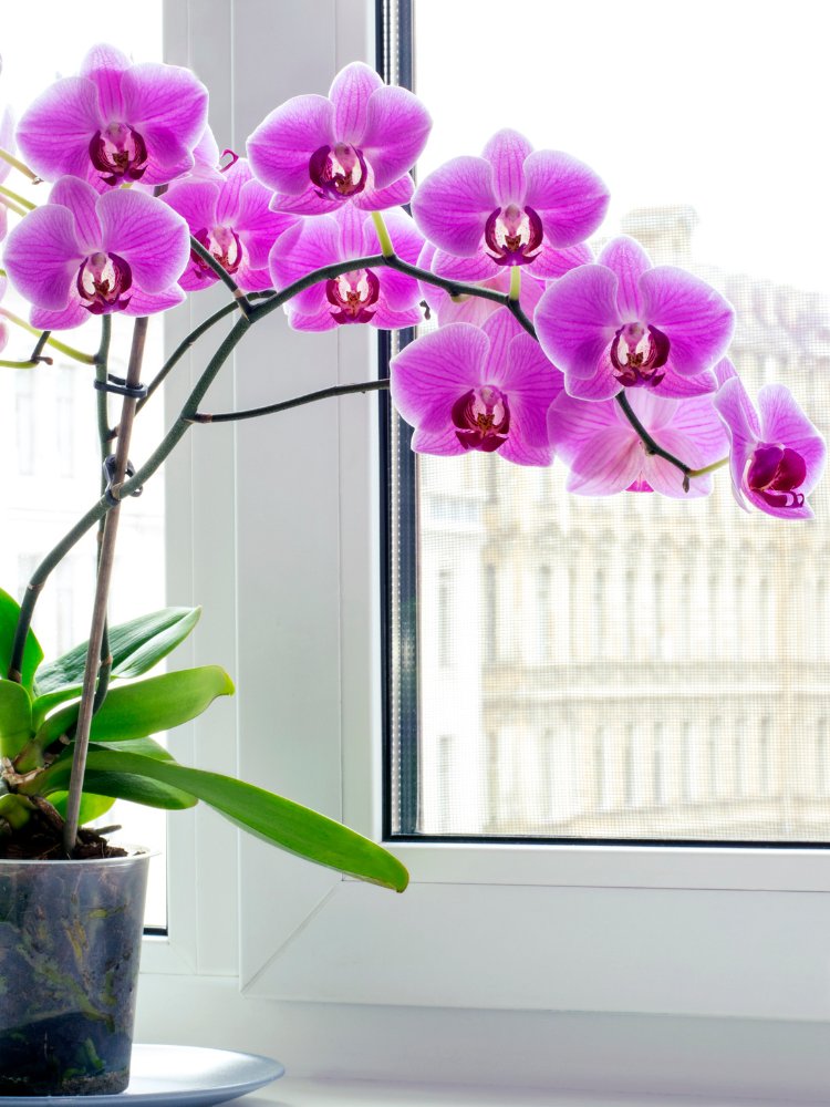 They prefer bright, indirect light, warm temperatures, and high humidity. With the right care and watering rhythm (roughly every 7–10 days), orchids can rebloom year after year indoors.