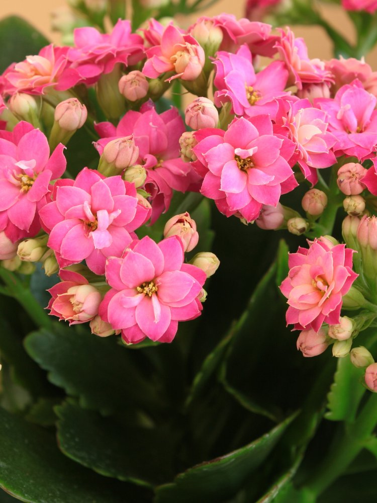 Kalanchoes are compact, succulent houseplants that produce clusters of bright, cheerful blooms in red, orange, yellow, pink, and white. Their thick leaves store water, making them perfect for forgetful waterers or dry homes.