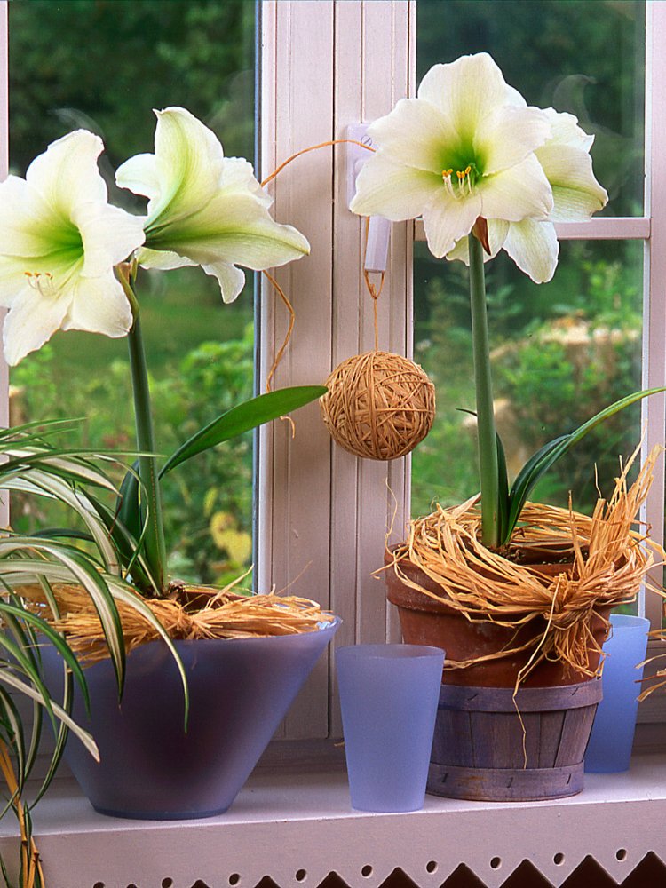 Amaryllis prefers bright, indirect light and minimal watering until growth begins. After blooming, it can be rested and encouraged to bloom again the following year.