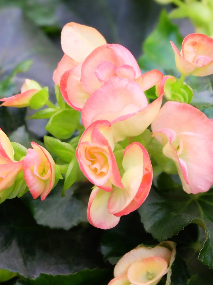 They prefer bright, indirect light, moderate humidity, and well-drained soil. Begonias are ideal for windowsills, desk tops, and shelves where they can stay warm and well-lit.