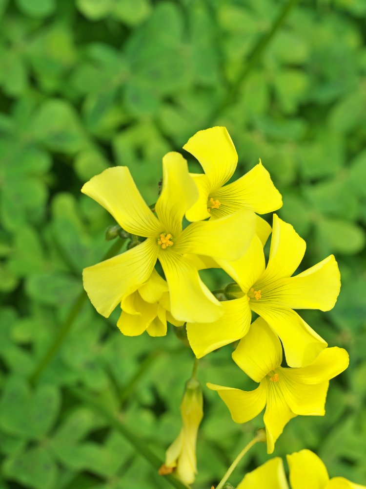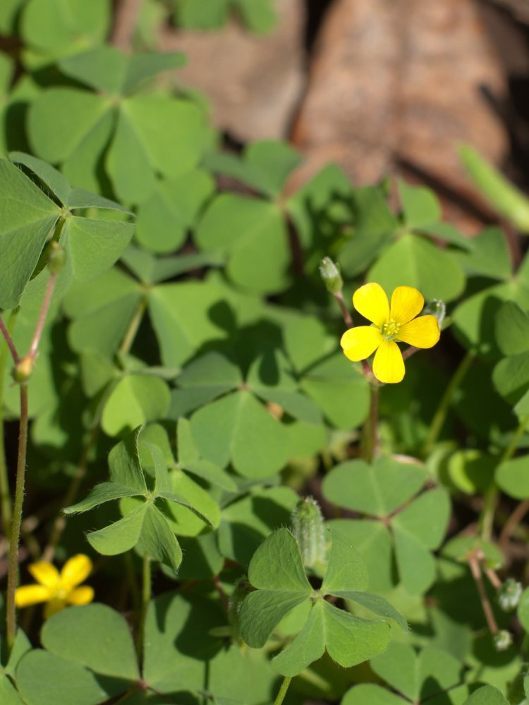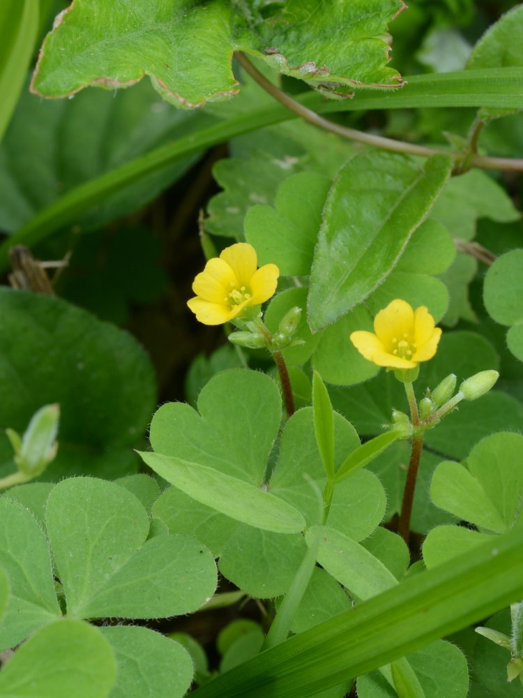 • Oxalis corniculata: Also known as creeping wood sorrel, this variety has a low growth habit and can easily take over garden beds.