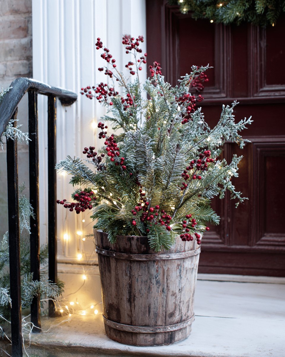 Style it on your doorstep or stagger a pair down the steps to make an instant holiday welcome. Add a simple wreath on the door and a couple of lanterns for evening mood, or tuck in pine cones and cinnamon sticks for extra texture and scent.