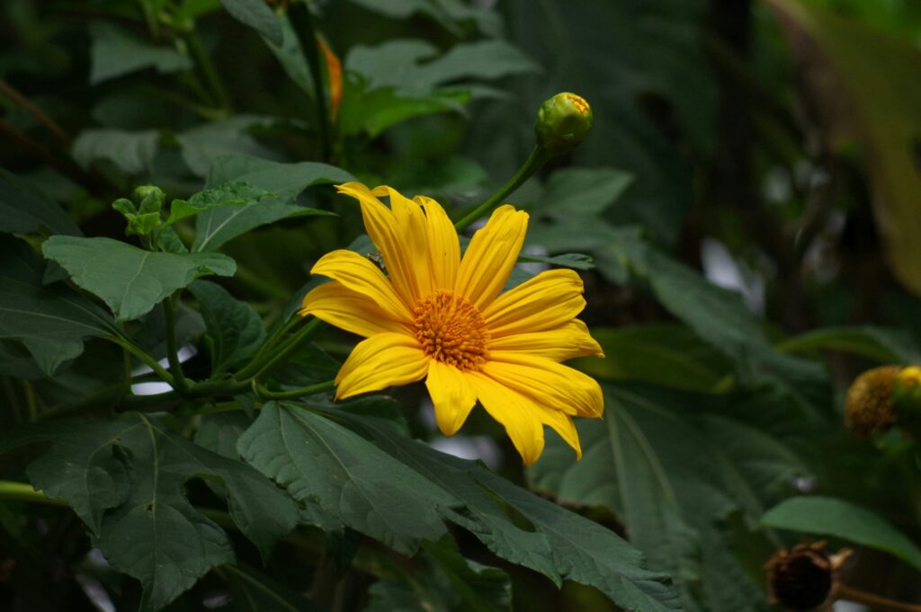 This plant grows tall, sometimes reaching 4 to 6 feet. Its flowers are daisy-shaped and stand out above the leaves. Butterflies find Tithonia easy to reach for nectar.