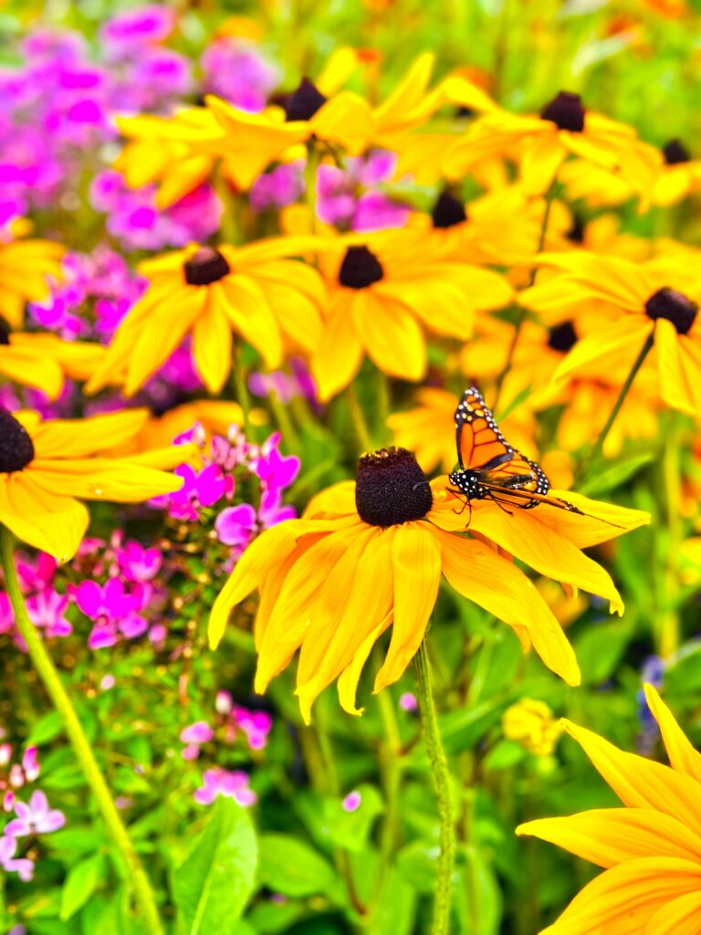 When you plant a patch of Black-eyed Susans, you’ll notice butterflies visiting often. The flowers give them a nice spot to rest and feed.