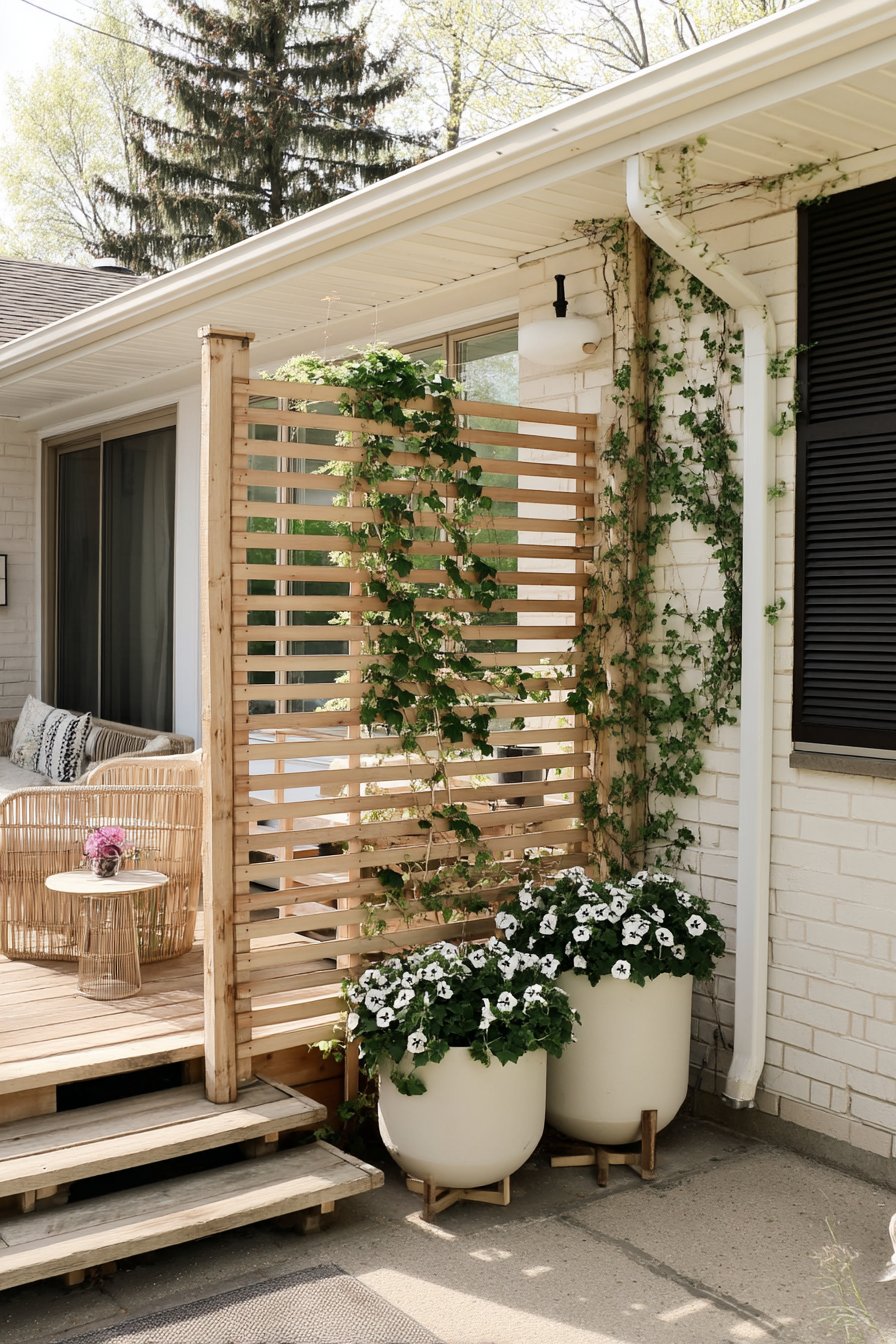 - Use Lattice Panels: Lattice panels are an excellent option for creating a visually appealing privacy screen. They allow air and light to pass through while providing sufficient privacy, and can be easily customized with climbing plants.