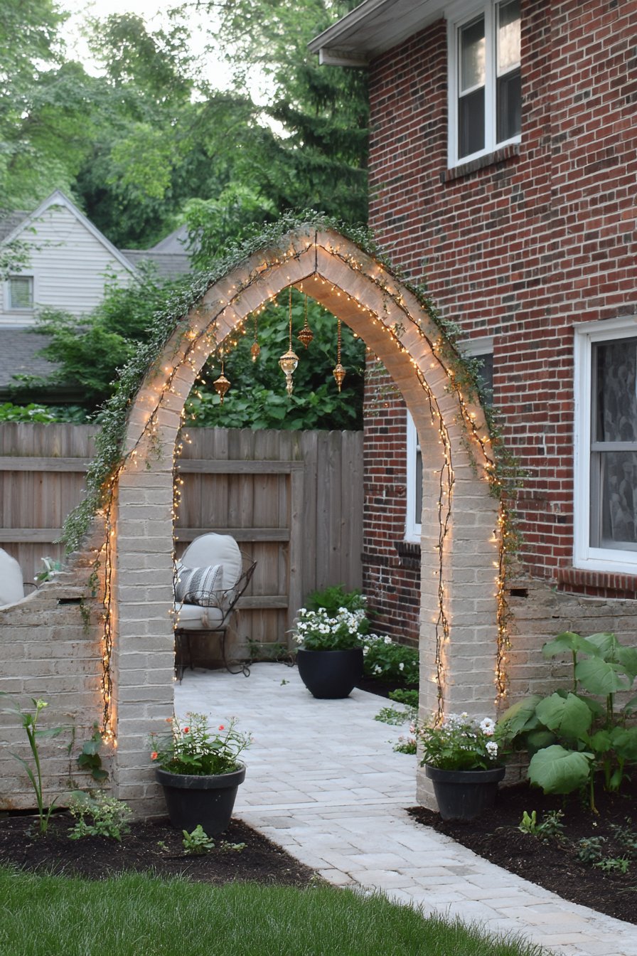 4. Add lighting: Install solar-powered string lights or lanterns on the archway to enhance its beauty in the evening and create a warm, inviting atmosphere.