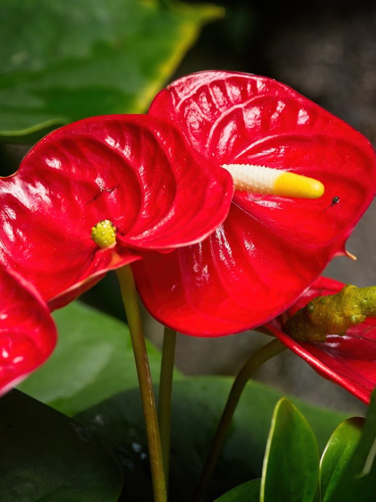 • Anthurium andraeanum: The classic variety known for its bright red spathes.