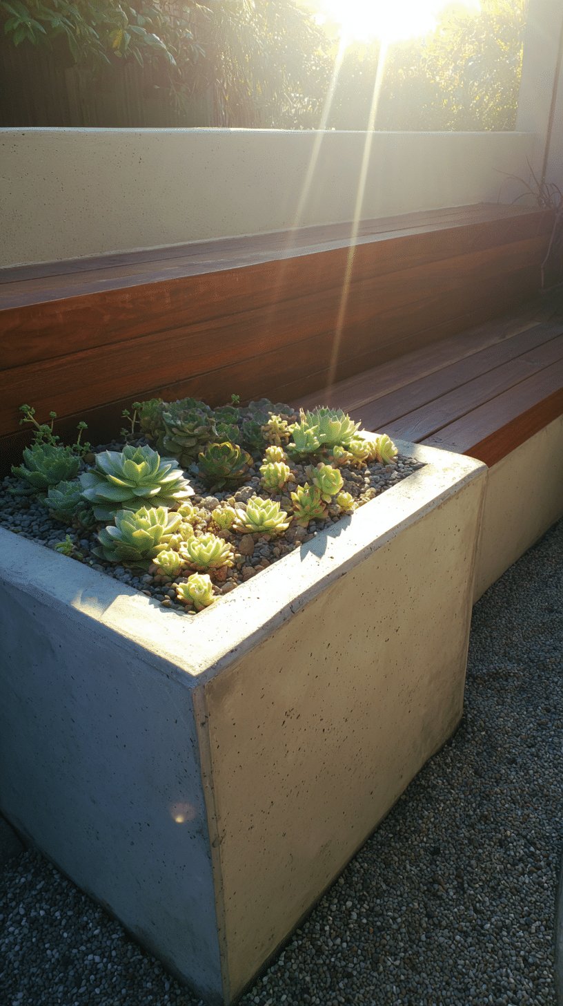 I love how a planted bench softens concrete, creates quick privacy, and gives succulents, trailing vines, or a row of herbs a proper stage.