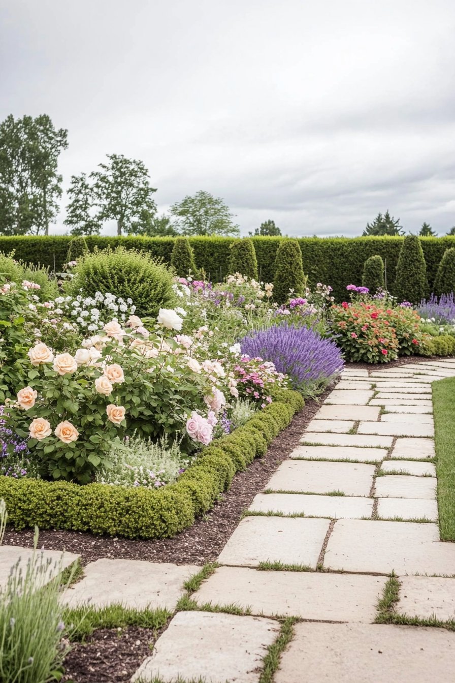 Incorporating rustic stone pathways adds warmth and charm, guiding visitors through this lush, inviting space. Don’t forget to include fragrant herbs like lavender for added sensory delight!