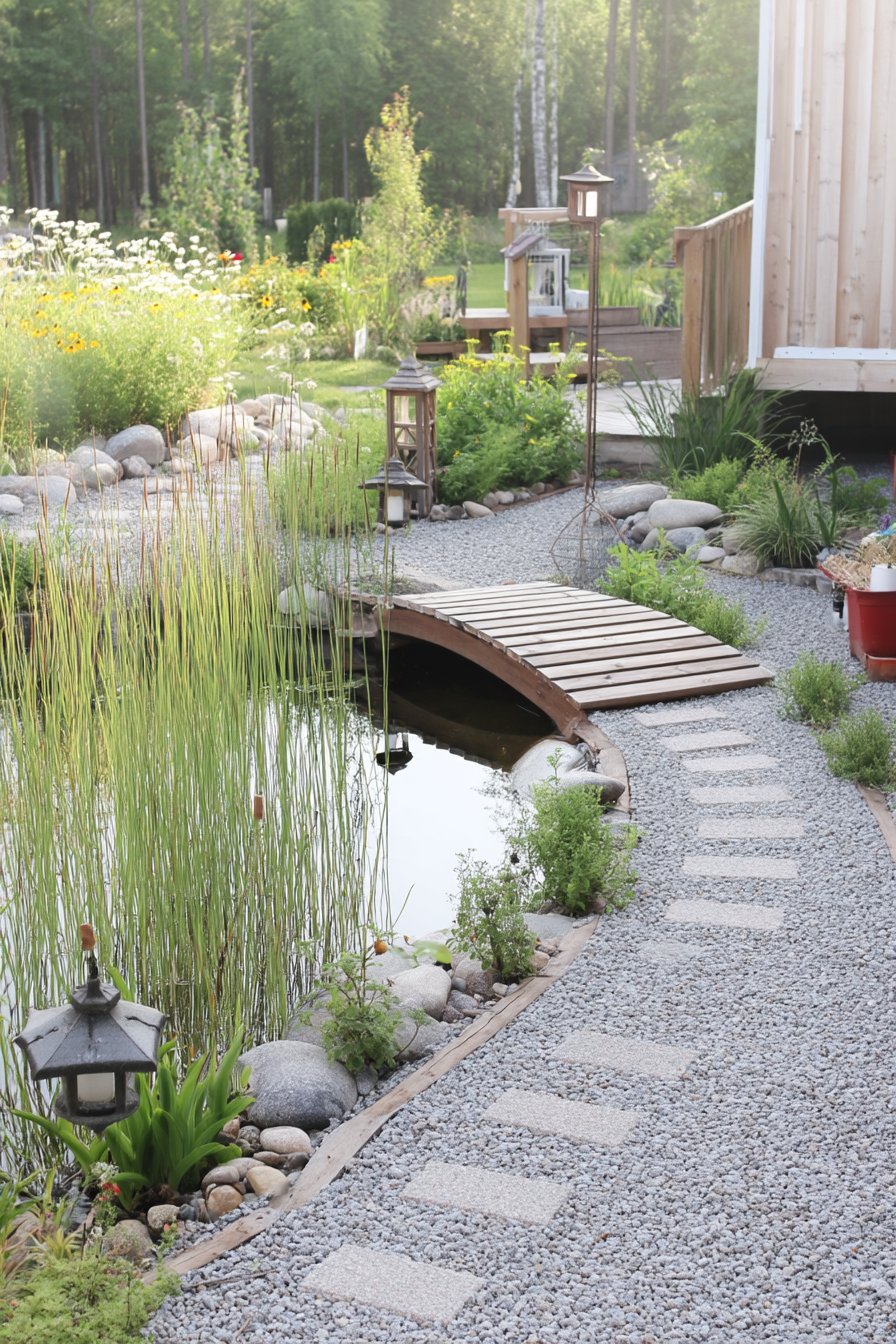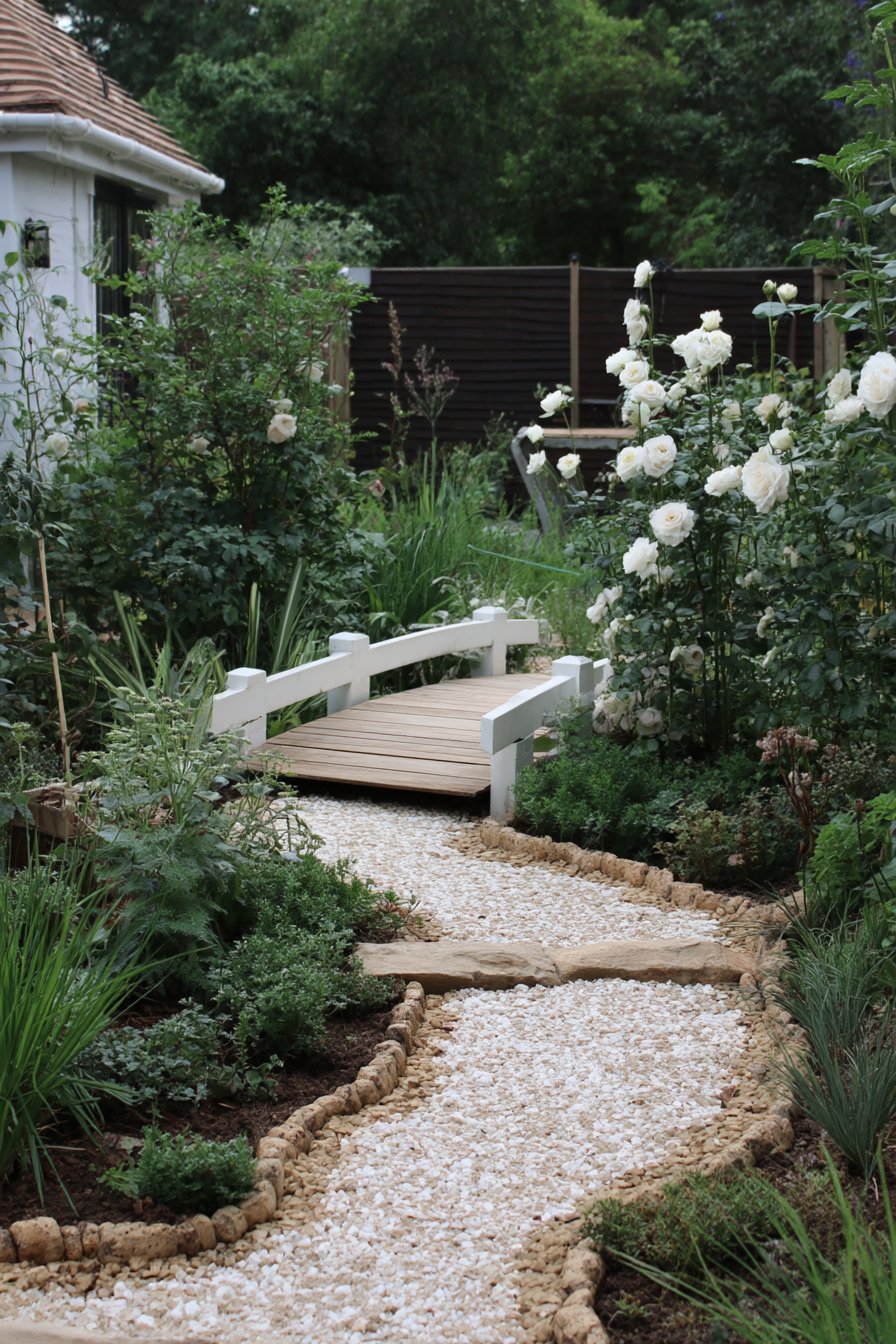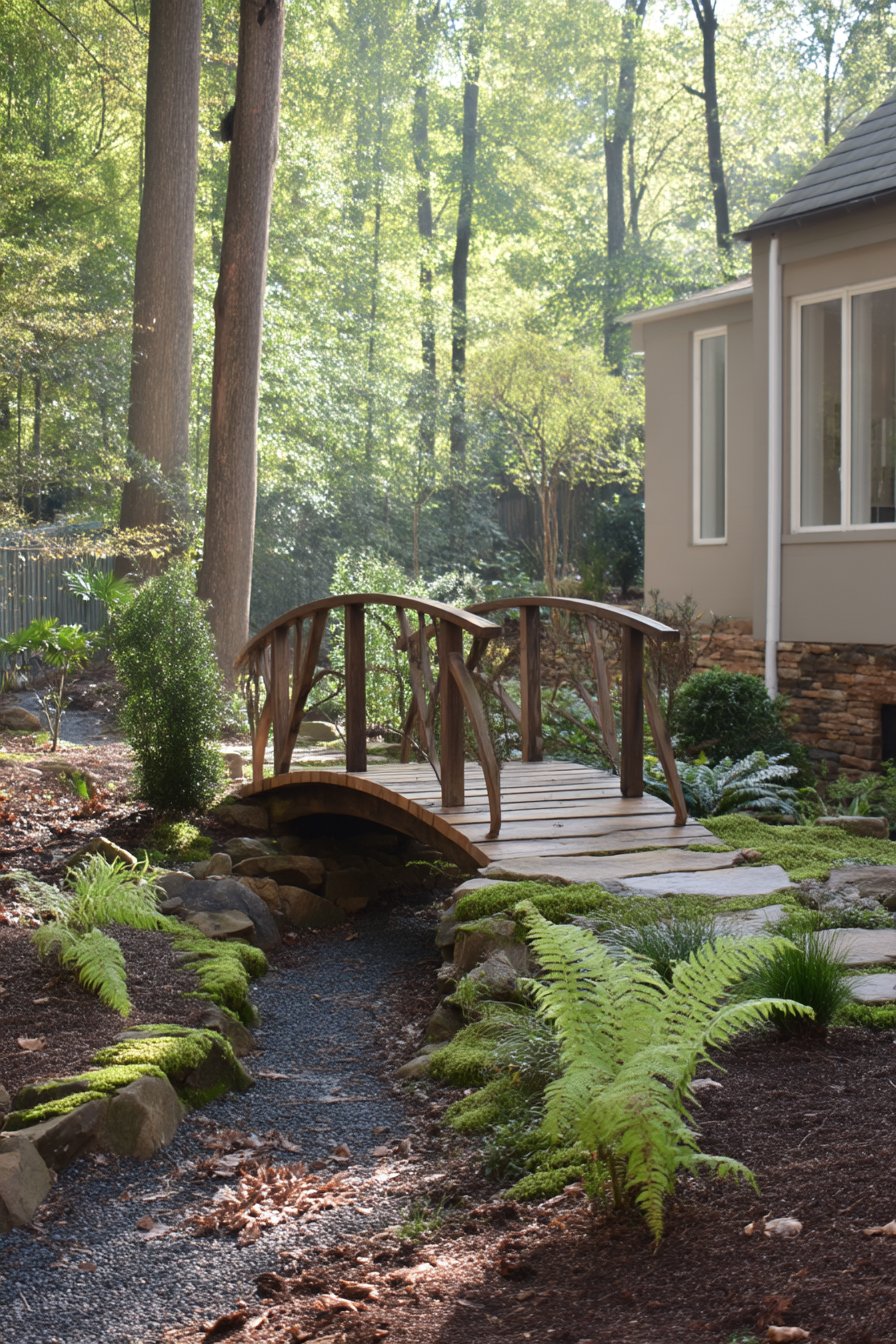 - Create Inviting Paths: Lead visitors to the bridge with inviting pathways lined with plants, stones, or stepping stones to draw the eye and enhance the journey through your garden.