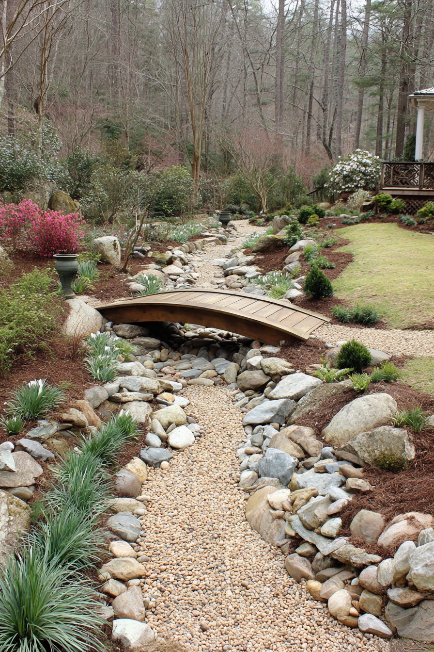2. Incorporate gravel: Use coarse gravel to mimic water in your design. Rake patterns into the gravel to add texture and interest.