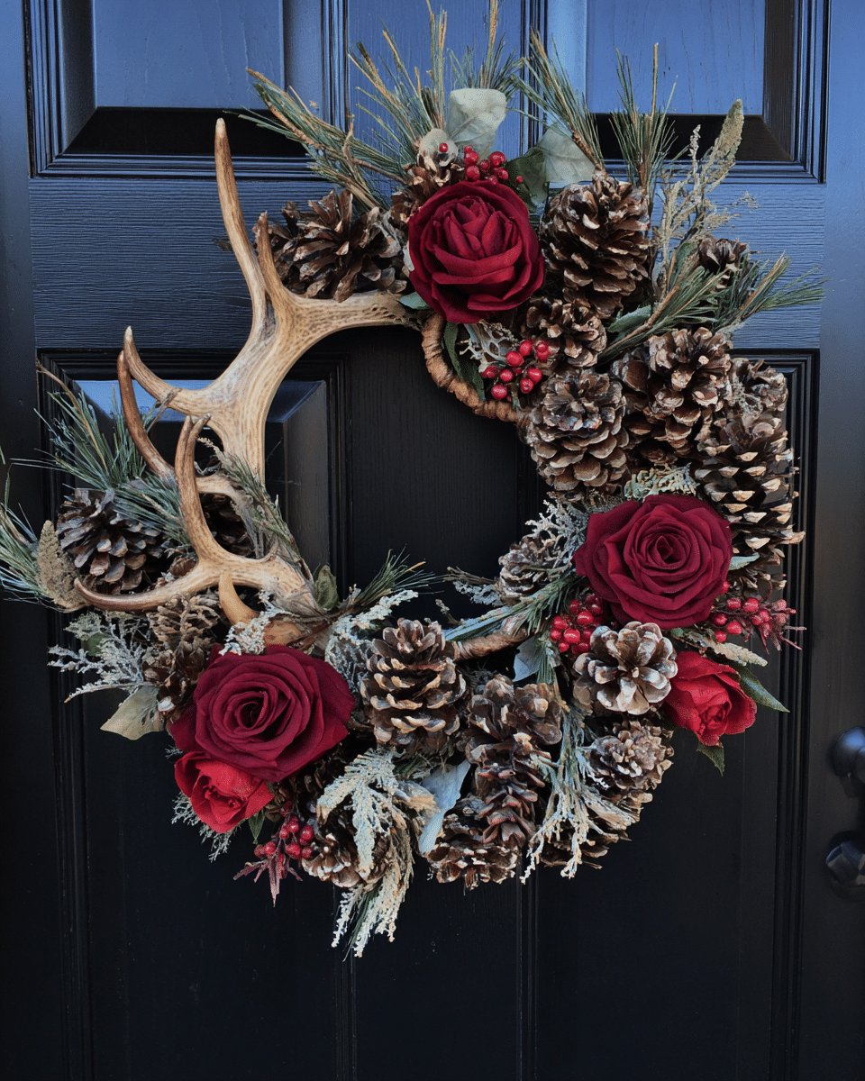 The antler adds a cheeky, sculptural moment so the whole thing reads intentional and a little wild, not just sweet. It feels warm and luxe without being fussy, which is exactly my kind of holiday energy.