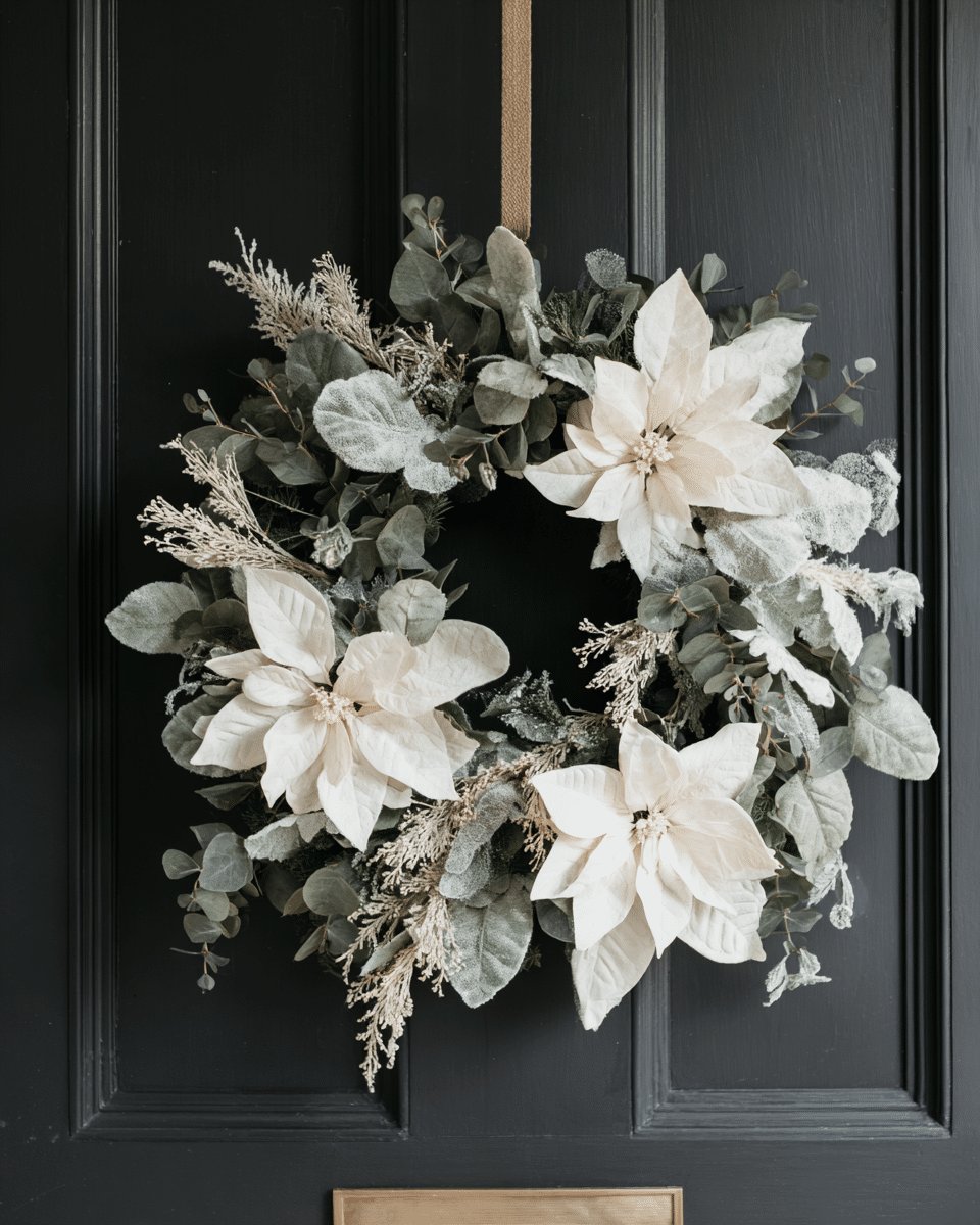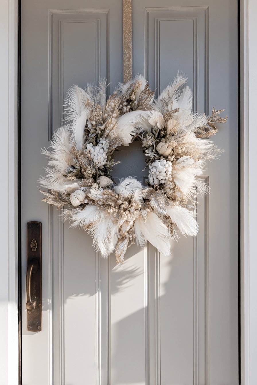 Style it with a silver velvet ribbon and warm white fairy lights for a soft glow, or lean minimalist with brass hardware and a woven doormat to let the wreath do the talking.