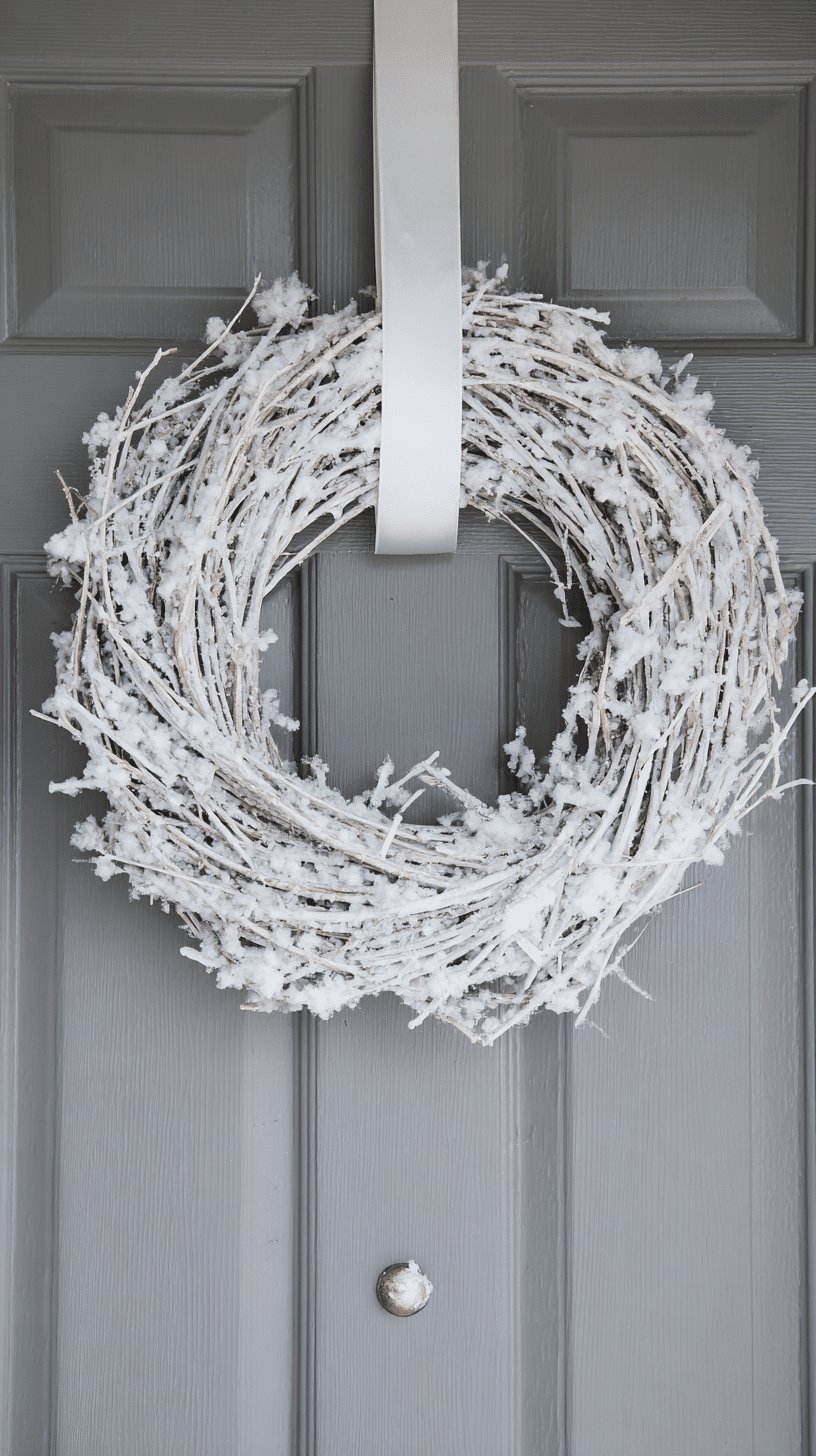 I love how this White Christmas Wreath feels like a gentle snowfall caught in a perfect circle. The twig base is lightly painted and dusted with faux snow so it reads clean and textural at the same time, and that wide white satin ribbon keeps the look polished and easy.