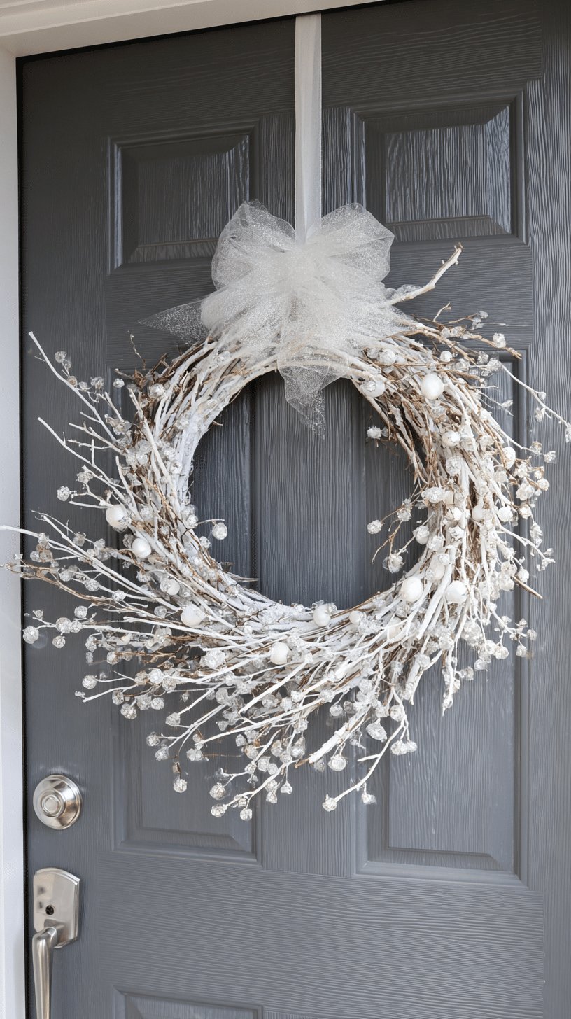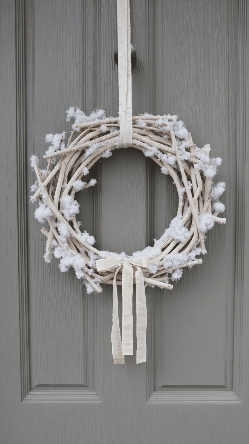 Style it with warm brass hardware, a pair of lanterns, and a woven doormat for a Scandinavian holiday vibe. If you want extra texture, tuck in a few eucalyptus sprigs or tiny battery fairy lights to let soft greenery and glow peek through the twigs.