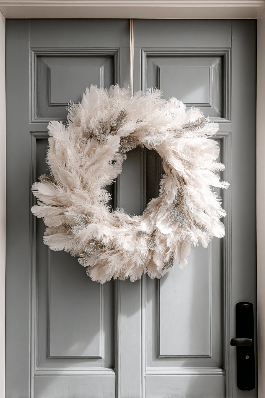 I like to keep surrounding decor minimal so the wreath looks chic not fussy; a knitted doormat or a cluster of white candles finishes the scene without stealing the spotlight.
