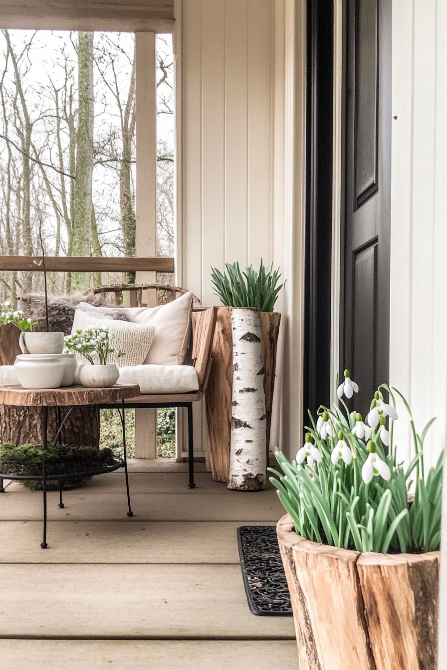 24) Minimalist Spring Porch with Snowdrops