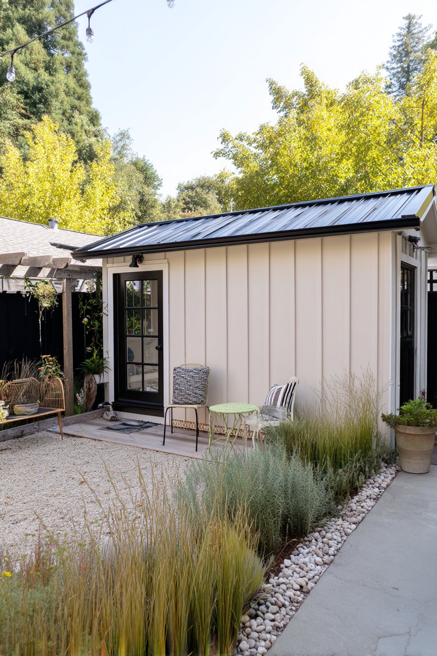 - Choose a Neutral Color Palette: Stick to a palette of neutral colors with occasional bold accents. This lends a modern vibe while ensuring the shed complements its environment.