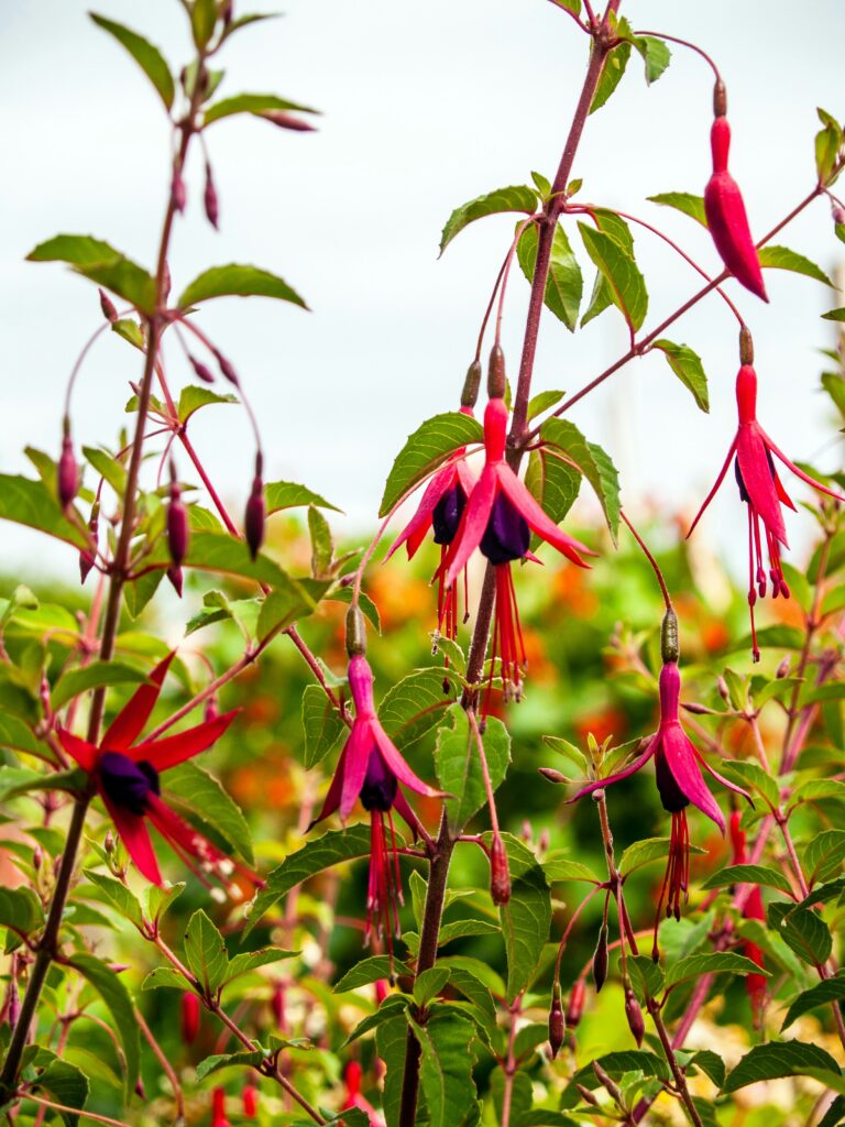 Fuchsias can bloom for a long time, starting in late spring and often lasting until fall. This gives hummingbirds a good food source for much of the year. There are different types to try, so you can pick what works best for your yard.