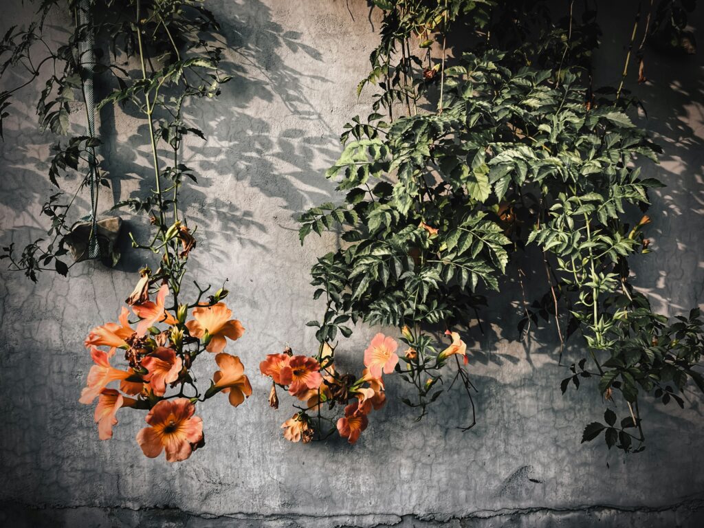 Trumpet creeper is a fast-growing vine that brings bright, tube-shaped flowers to your yard. The blooms are usually orange-red and stand out in the summer. You’ll notice hummingbirds visiting these flowers because they fit perfectly with their long beaks.