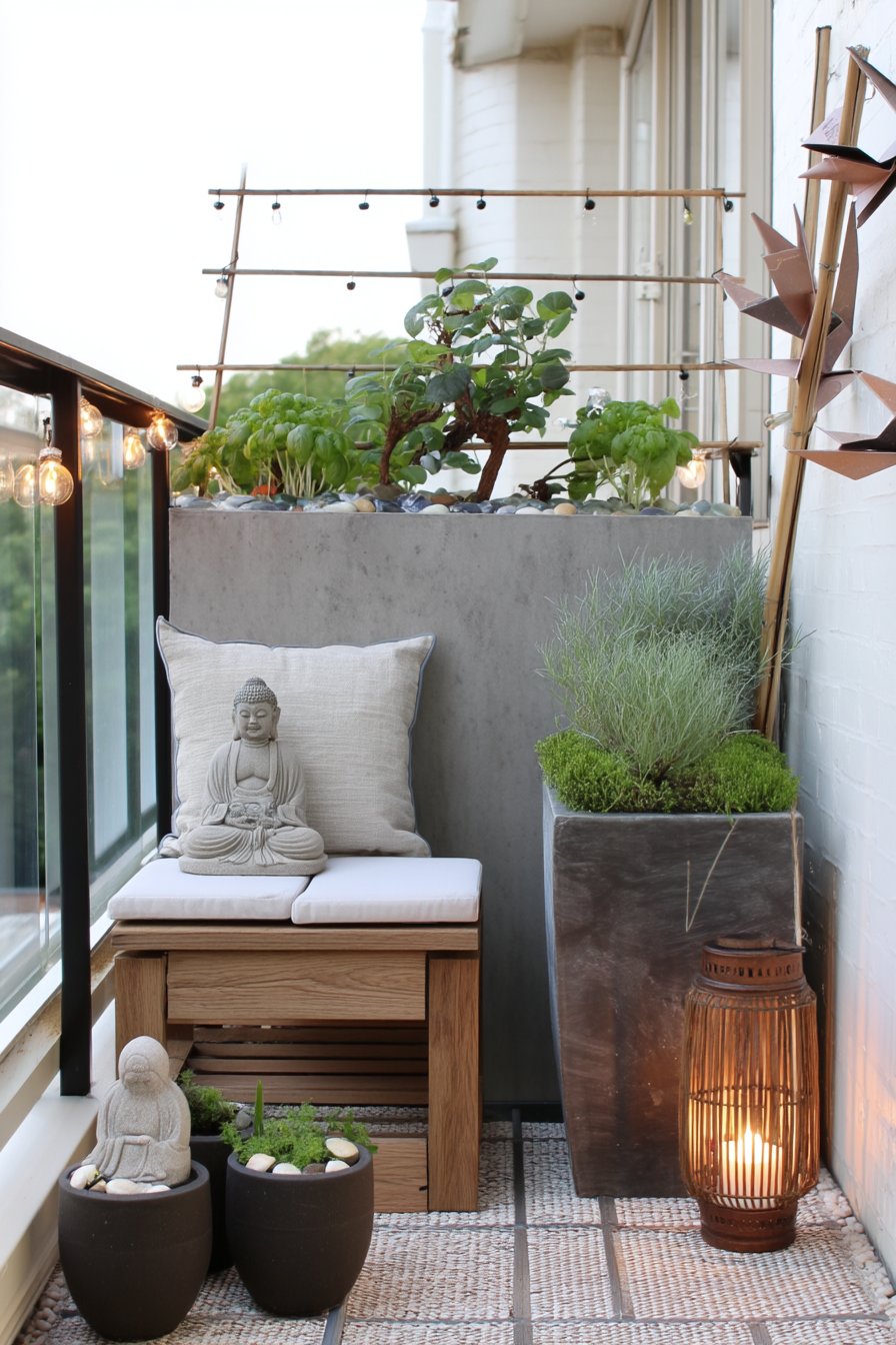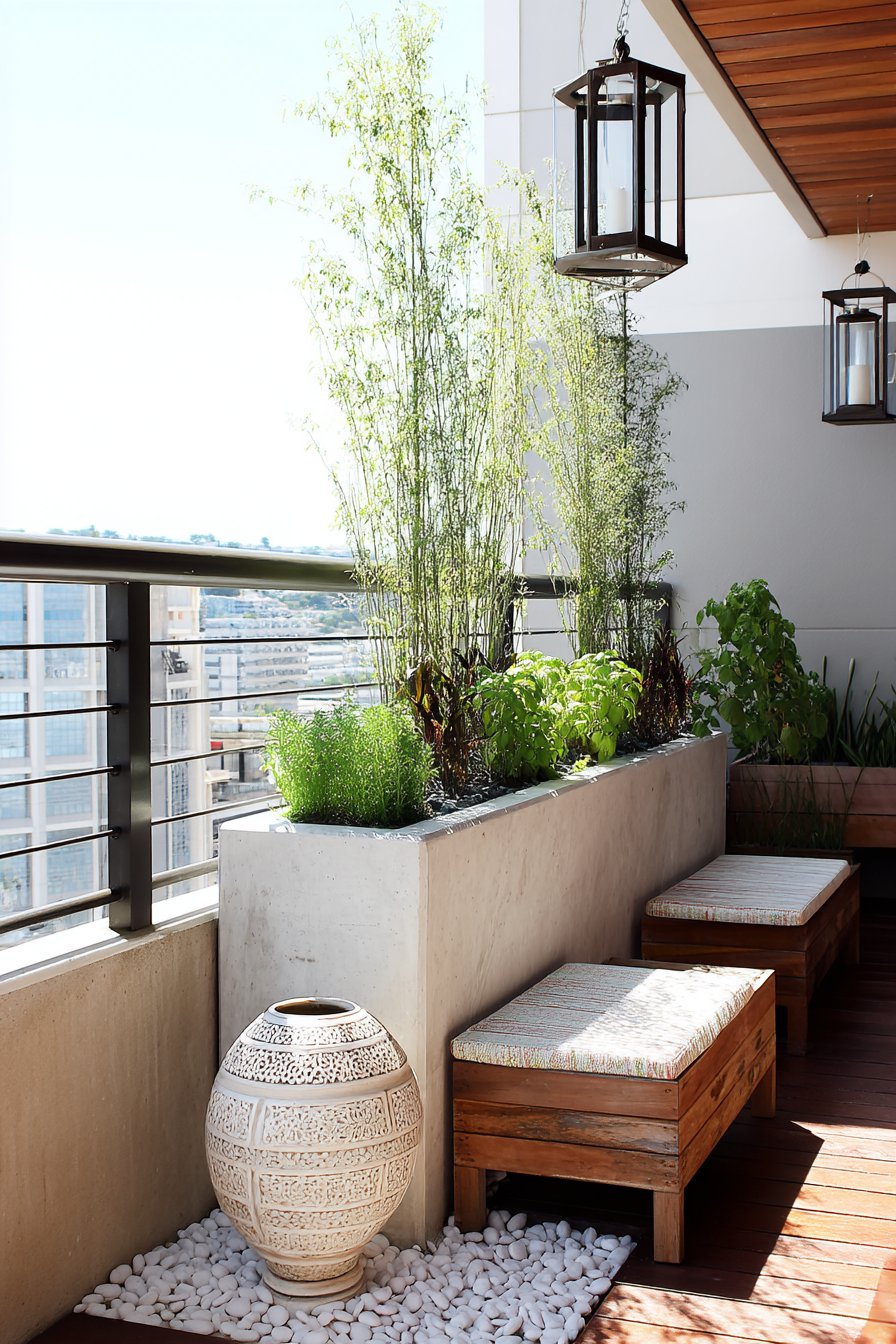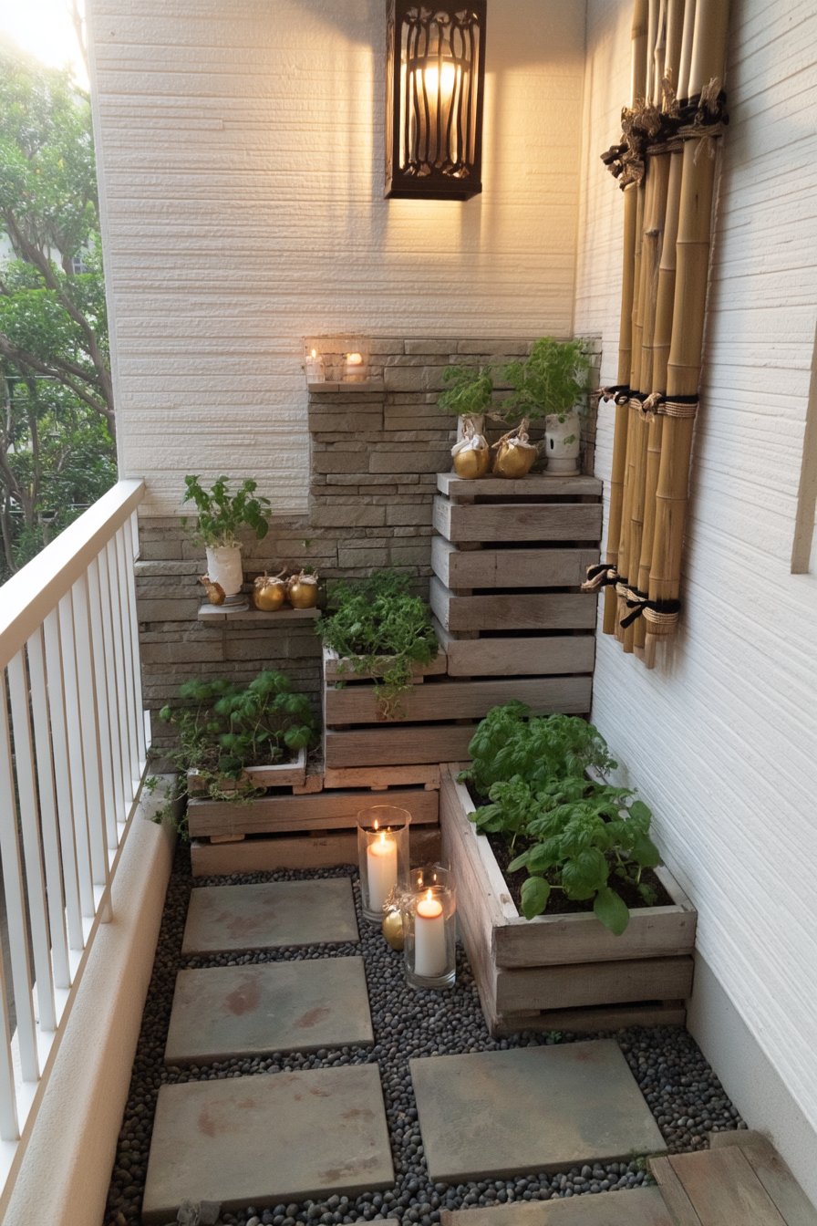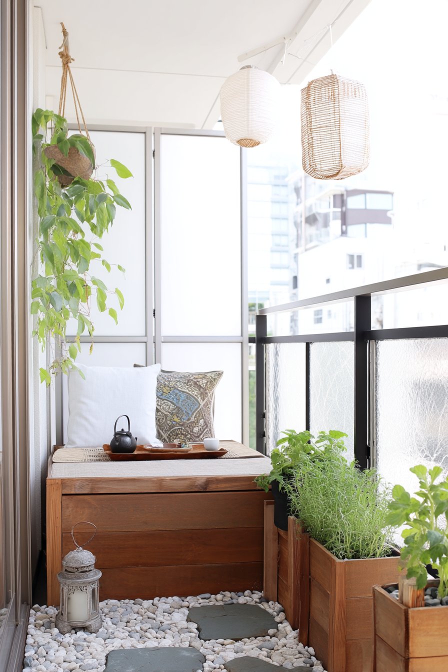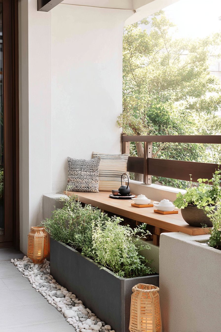 6) Balcony Herb Garden With Minimalist Japanese Design