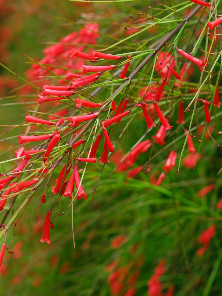 • Russelia equisetiformis ‘Red’: The classic variety known for its abundant red flowers and trailing habit.