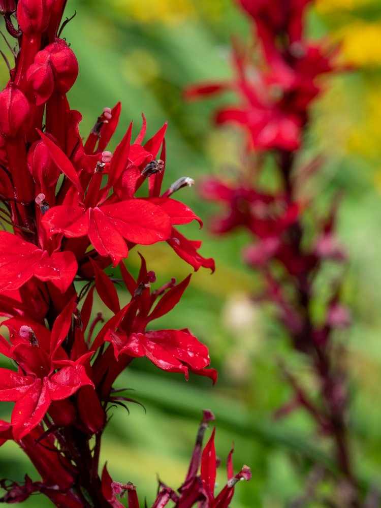 • Lobelia cardinalis: The classic species known for its tall, vibrant red flower spikes.