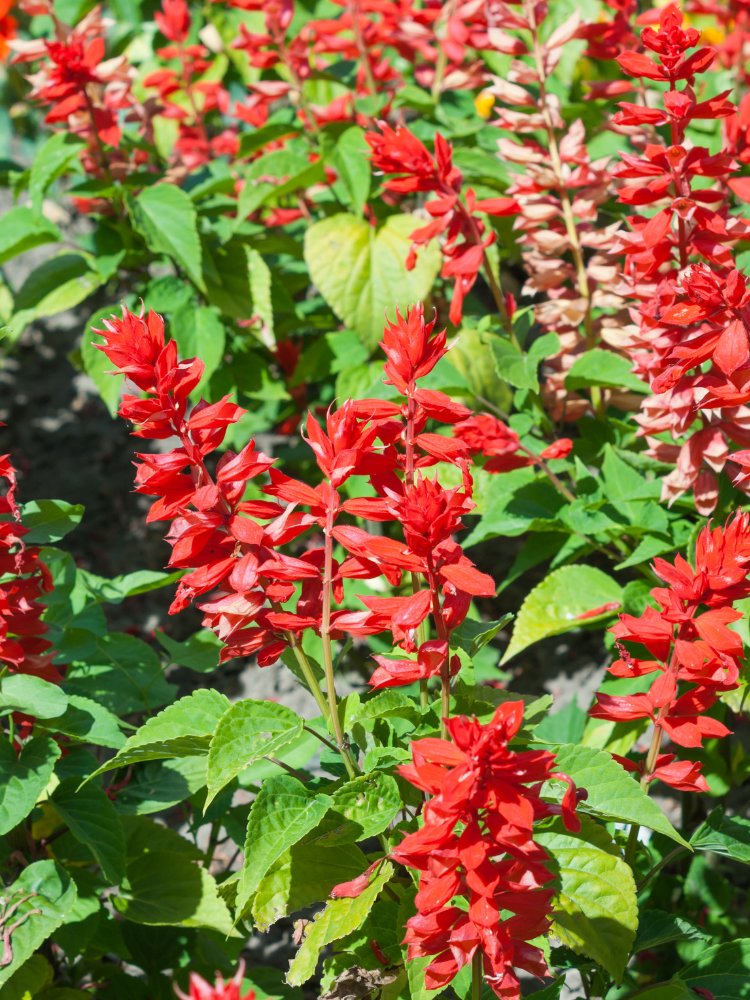 • Salvia splendens: Known as flaming sage, this variety boasts bright red flowers and sturdy growth.