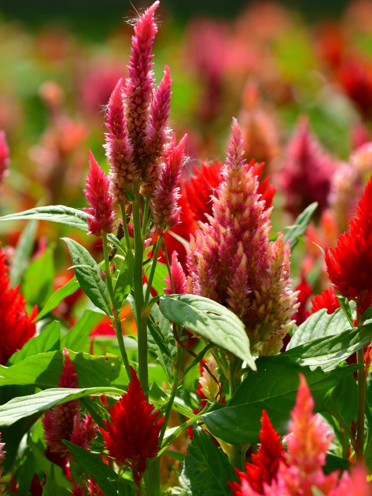 • Celosia ‘Flamingo’: This variety boasts fluffy, bright red flowers and is perfect for borders.