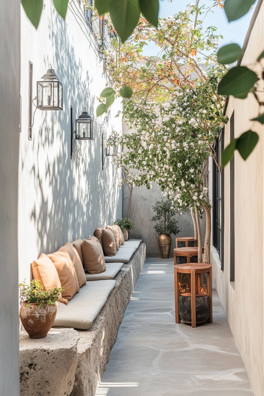 19) Minimalist Courtyard with Blooming Trees
