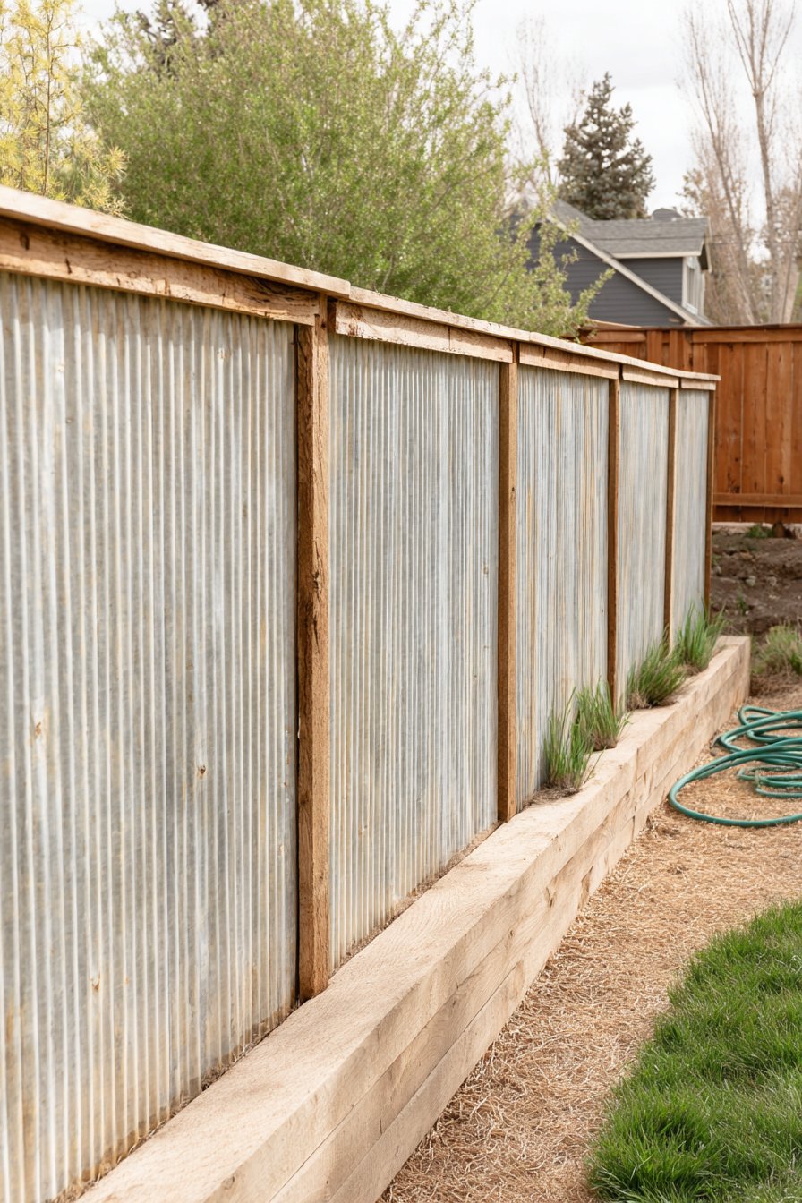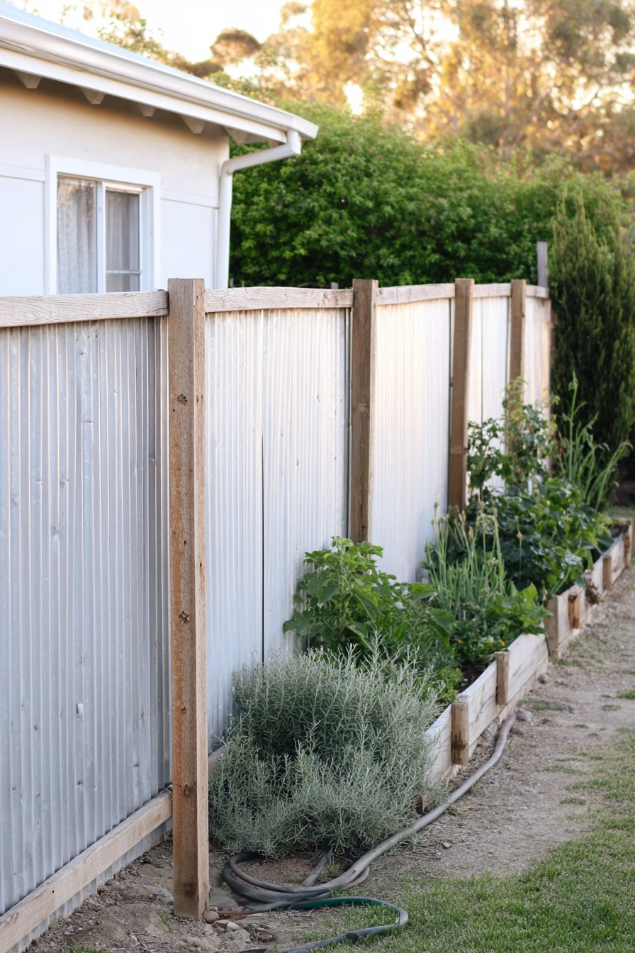 For a budget-friendly version, use reclaimed wood for framing and purchase corrugated metal sheets from a local hardware store; securing them with screws will create a sturdy, stylish fence. Adding a simple gravel or mulch base can enhance the overall aesthetic while keeping costs low.