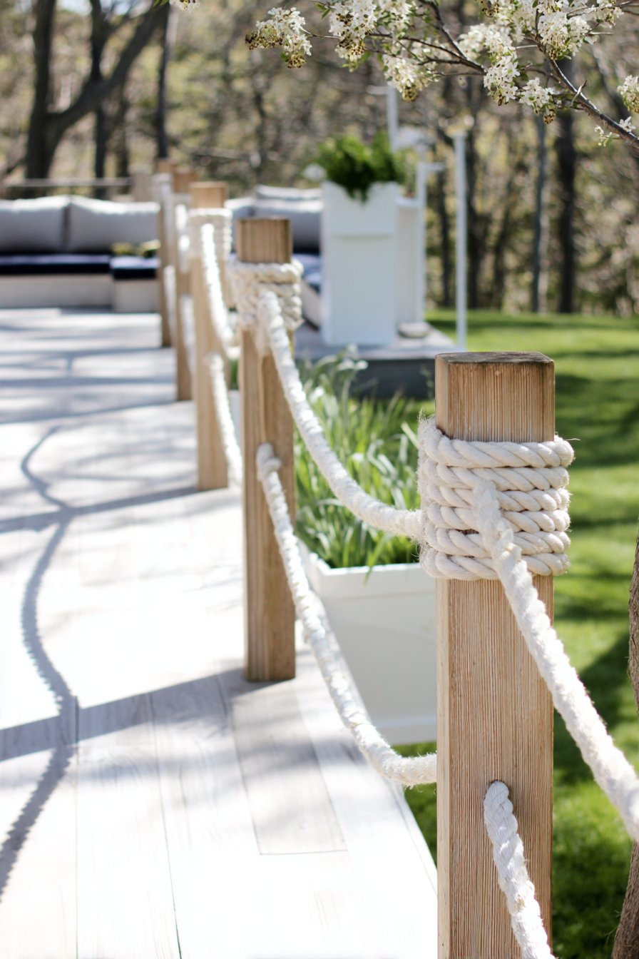 To recreate this look on a budget, use untreated wooden posts and thick rope, which can be found at hardware stores. Simple tools and basic knot-tying skills will allow you to assemble a stylish and functional fence.