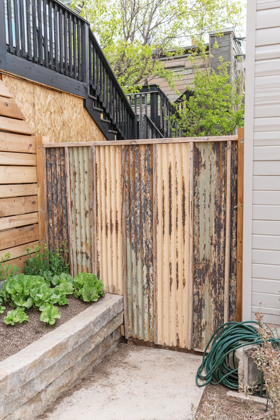 For a budget-friendly fence, source reclaimed metal sheets and wooden posts from local hardware stores or salvage yards, using simple screws for assembly. Consider planting hardy herbs or vegetables at the base to integrate nature seamlessly with your design.