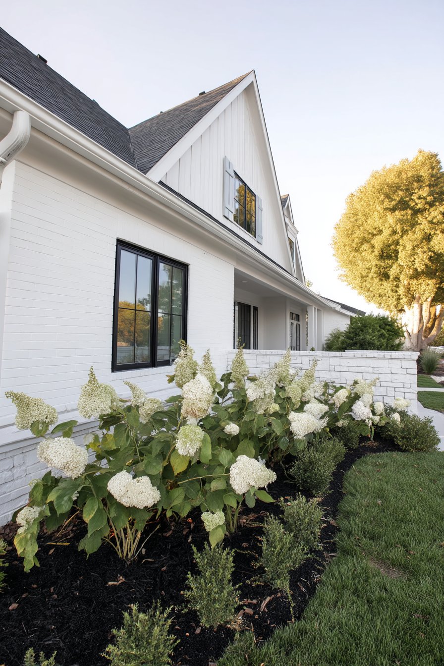 27) Modern White Hydrangea Front Garden Design