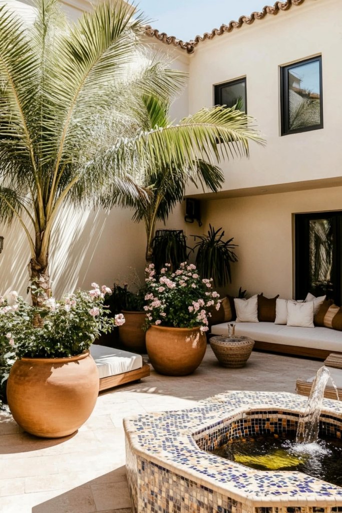 11. Mediterranean-Tropical Courtyard with Terracotta Accents