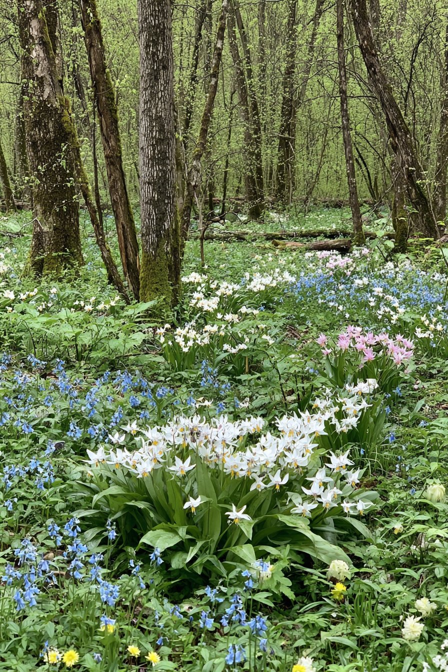 Incorporate varieties like Trillium grandiflorum, Mertensia virginica, and Erythronium ‘Pagoda’ for a stunning effect. Ground covers like Anemone nemorosa can enhance texture and fill in gaps beautifully.