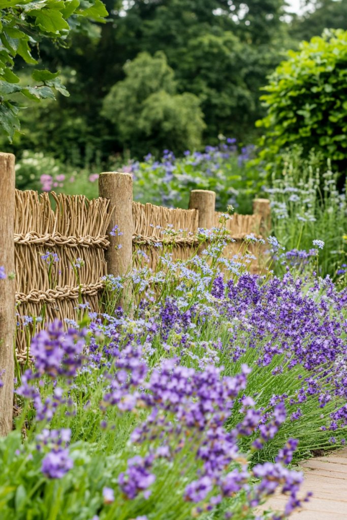 15. Natural Hazel Wattle Fence with Lavender and Chamomile