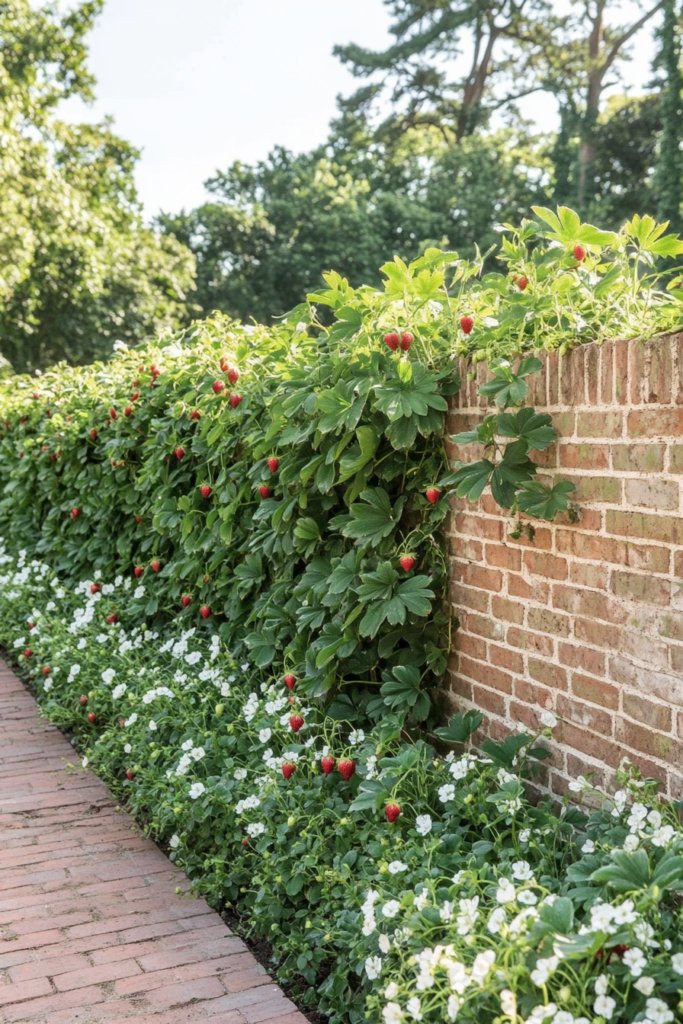 7. Half-Wall Brick Fence with Ivy and Wild Strawberries