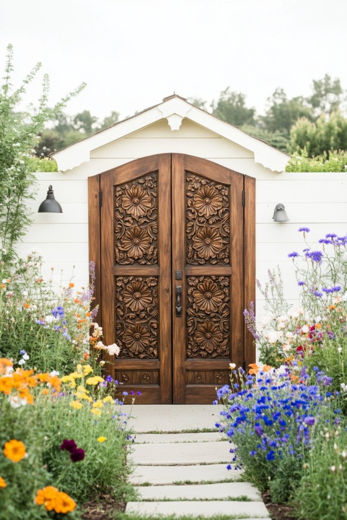 5. Cottage Gate with Hand-Carved Wooden Panels