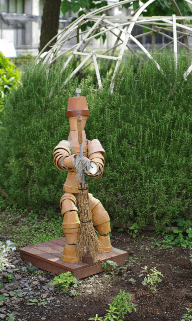 Built from stacked clay pots and garden tools, this sculpture blends humor, charm, and a DIY feel. It’s a celebration of garden life itself, echoing the tools and textures of the plot. Place it near raised beds, allotments, or kitchen gardens to reflect a love of growing with a smile.