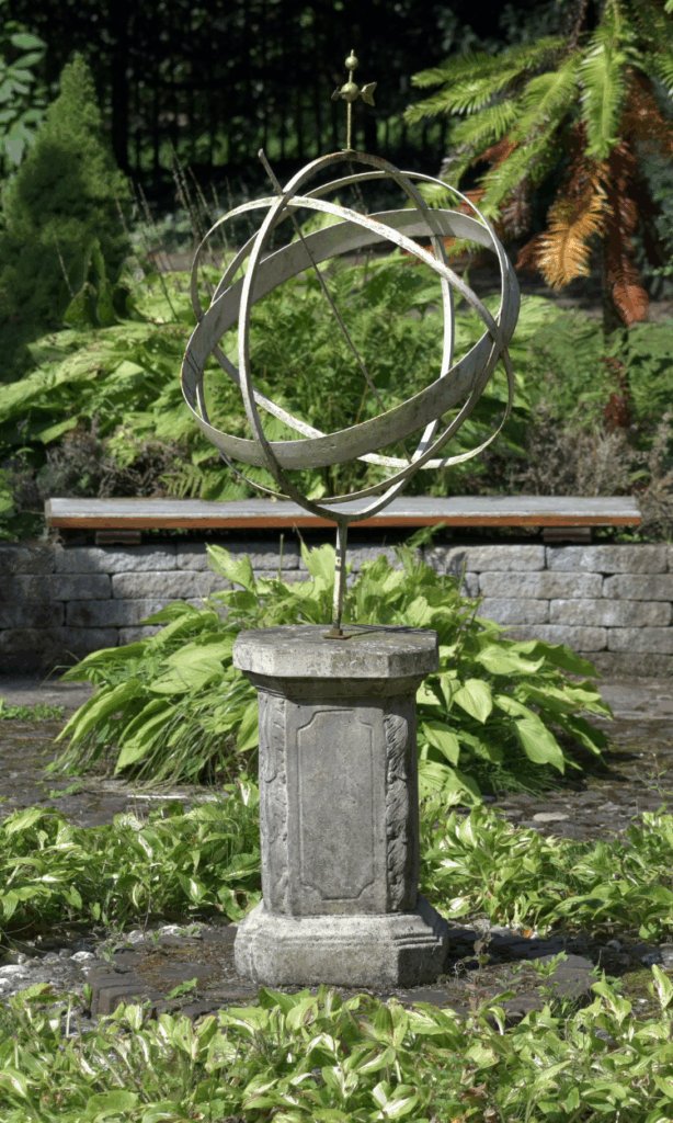This elegant armillary sphere combines function and beauty. With its aged metal rings and sturdy plinth, it brings structure and historical charm to the garden. Often used to represent astronomy and navigation, it fits perfectly in formal gardens, central beds, or sun-filled patios, especially when paired with clipped shrubs or hostas beneath.