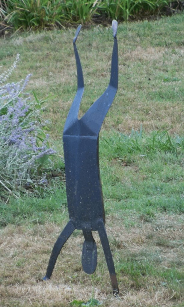 This minimalist, abstract metal sculpture of a figure doing a handstand brings instant playfulness to the garden. Its simplified lines and balanced pose make it a natural fit for lawn areas or borders where fun and surprise are welcome. This is a great option for modern gardens or spaces designed to be light-hearted and child-friendly.