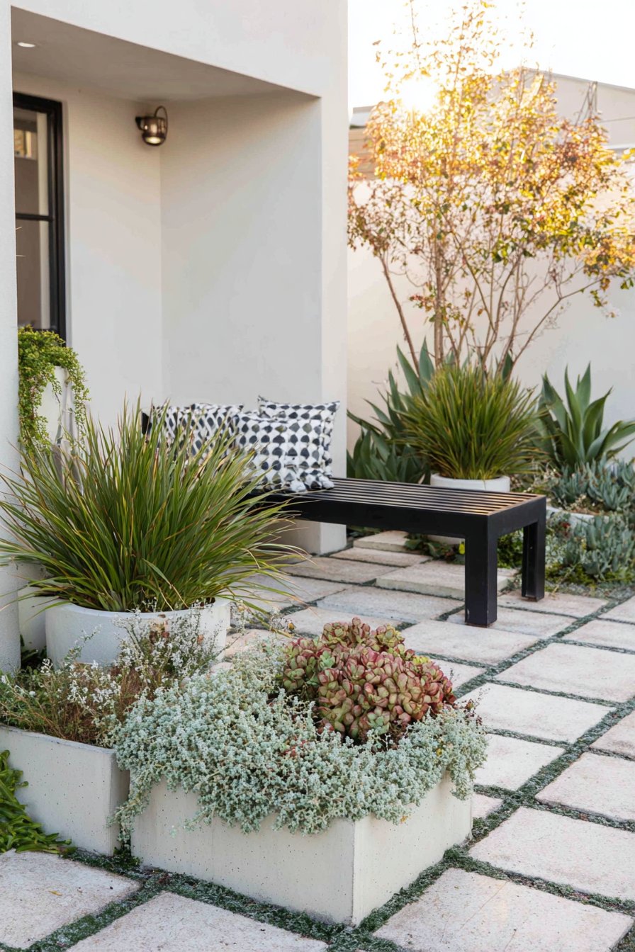 5) Modern Succulent Patio with Seating