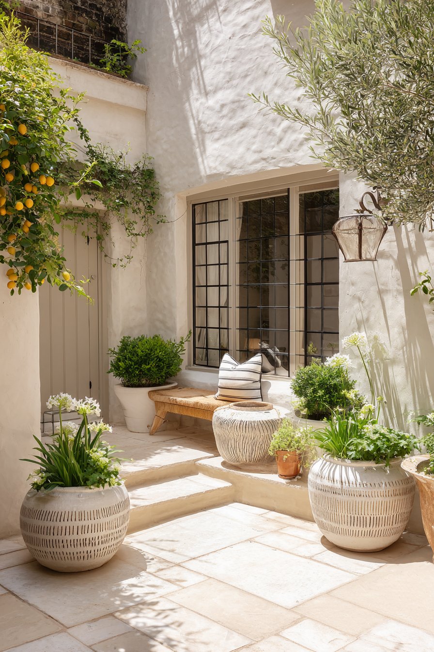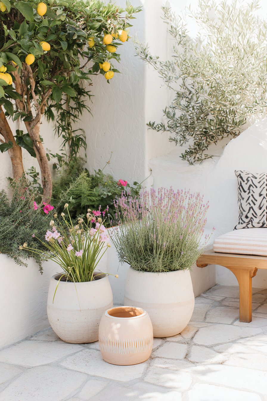 8) Mediterranean-Inspired Patio with Planters