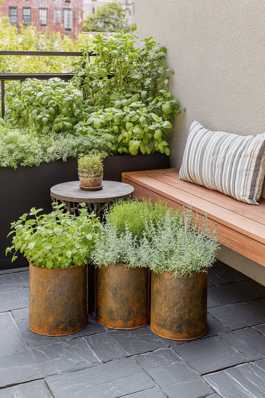 18) Herb Garden with Rustic Planters