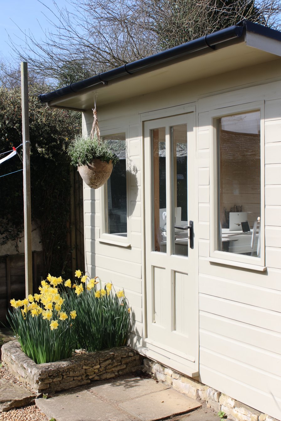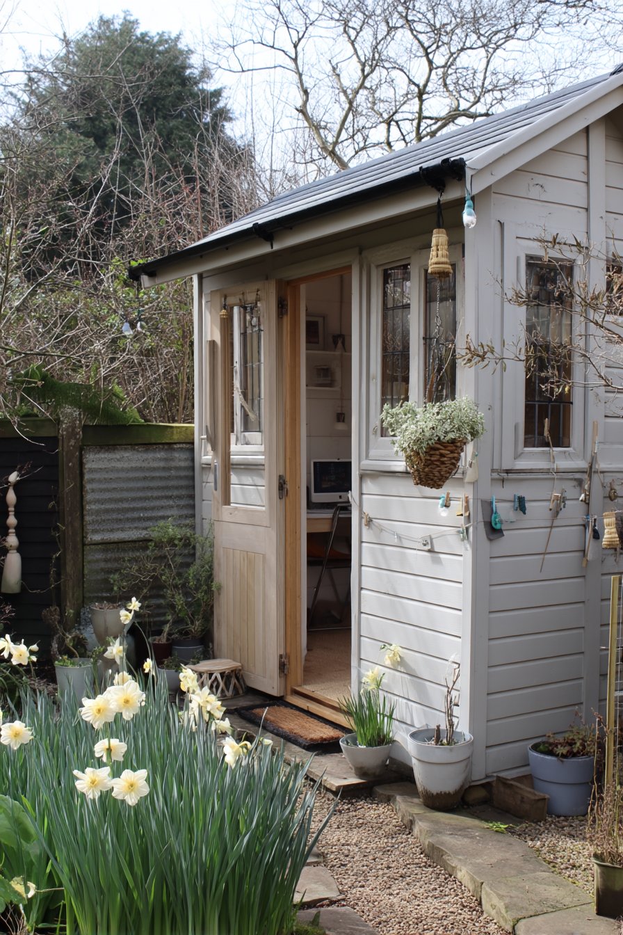 23) Rustic Garden Office with Daffodils