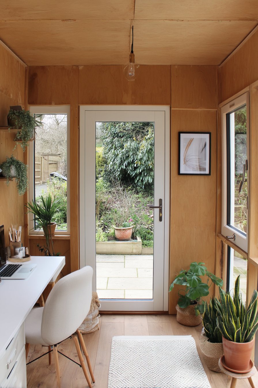 - Maximize Natural Light: Position your garden office to take advantage of natural light. Large windows or skylights can create a bright and inviting workspace, reducing the need for artificial lighting.