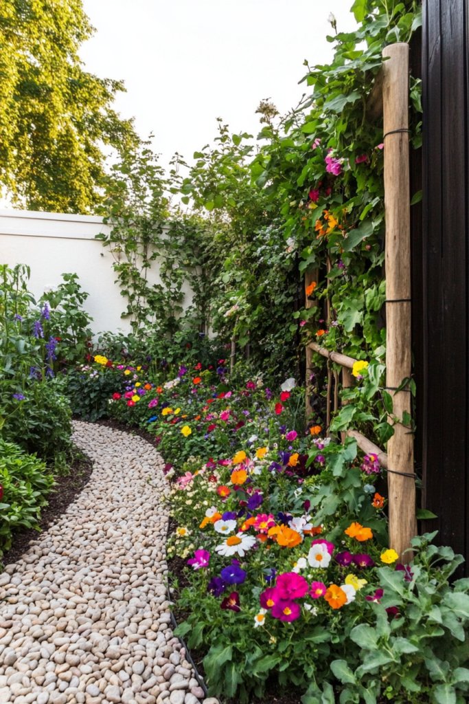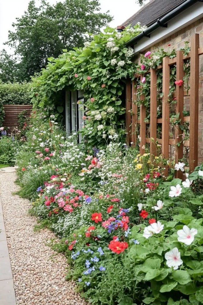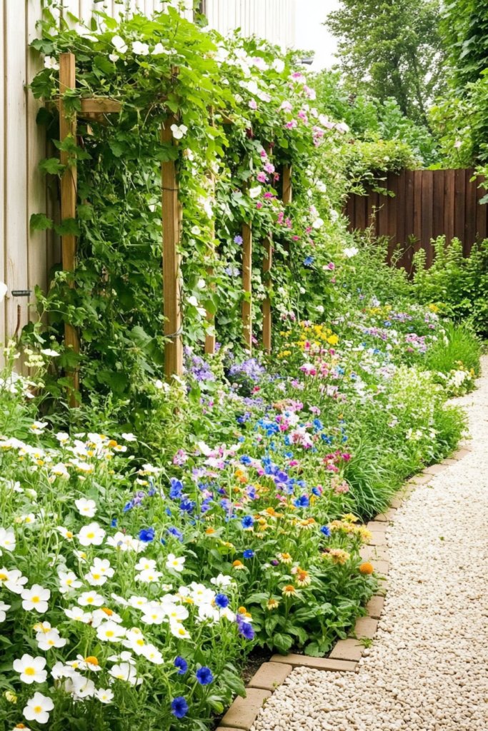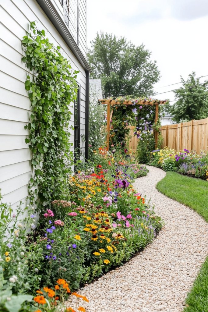 5. Cozy Side Yard Garden with a Gravel Walkway and Wildflowers
