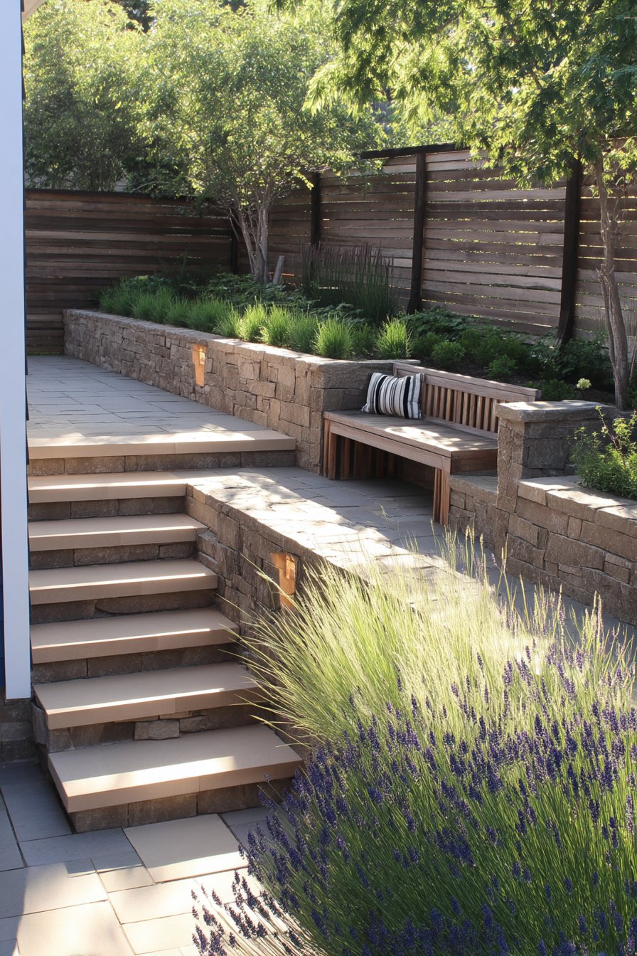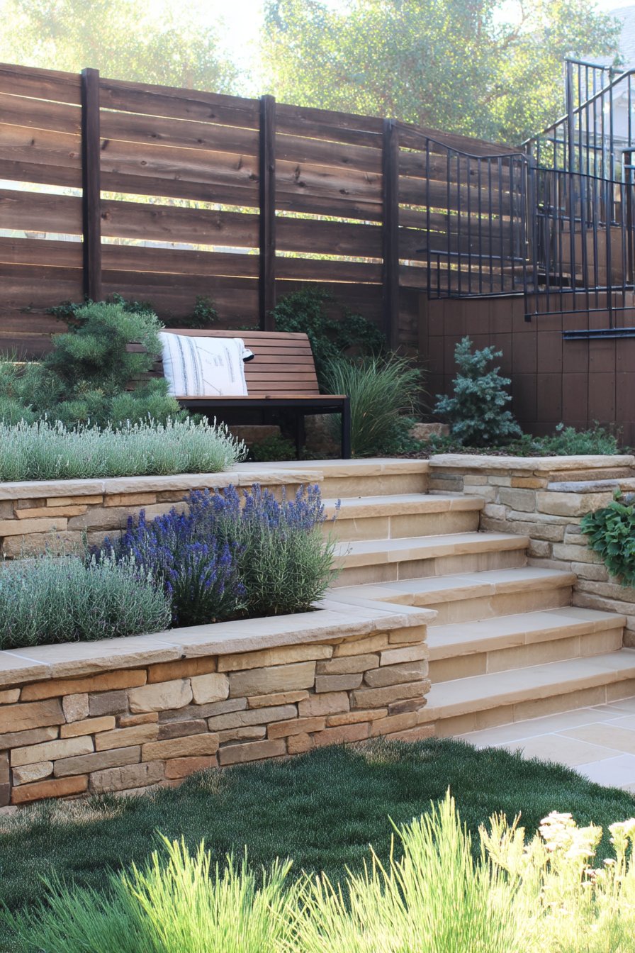 32) Modern Terraced Lavender and Stone Garden